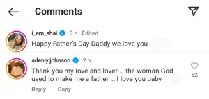 After coming across her post, her husband, Adeniyi Johnson, was quick to react by saying, “Thank you, my love and lover, the woman God used to make me a father; I love you, baby.” This reaction shows that her new post is well-appreciated by her husband, as shown by his positive remark.