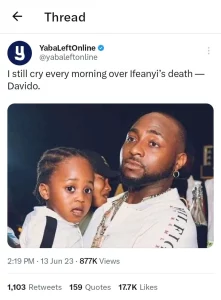 Afrobeats Superstar, David Adeleke, popularly known as Davido has generated several reactions and comments from the public, as he reveals during an interview that he still cries every morning over the death of his son, ifeanyi Adeleke, this generated several reactions and comments from the public, as everyone was surprised and overwhelmed with the fact that Davido could said it during an interview.