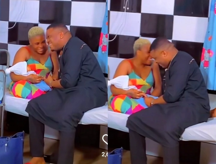 In the above video, Jasmine Chioma Okafor could be clearly spotted holding a baby in the hospital and Ken Erics could be clearly spotted sitting down close to her. John Okafor aka Mr Ibu could also be spotted in the video and it seems like they are on a movie set.