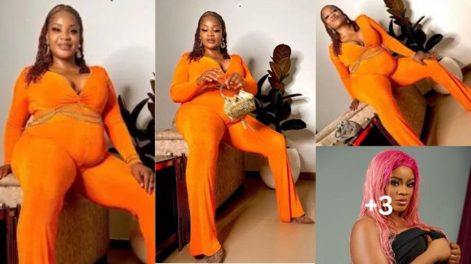 The thespian, who is currently expecting her third child – second with her husband Bobby Marris, took to her Instagram page to share beautiful photos of herself in an orange jumpsuit.