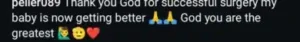 His post reads: My baby is better now 🙏🙏. God you are the best.”