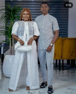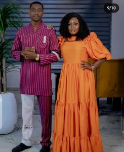 The lovely couple were seeing rocking beautiful different matching well designed outfits together, very excited as they posed for the camera in styles.