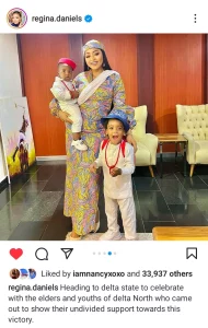 Regina Daniels and her family doesn’t disappoint when it comes to fashion. She used her recent post on Instagram to disclose to us that she’s traveling to Delta state.