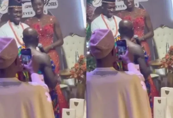 A moving video shows the endearing second Moses Delight’s father by marriage hands him keys to his UK home during their wedding.