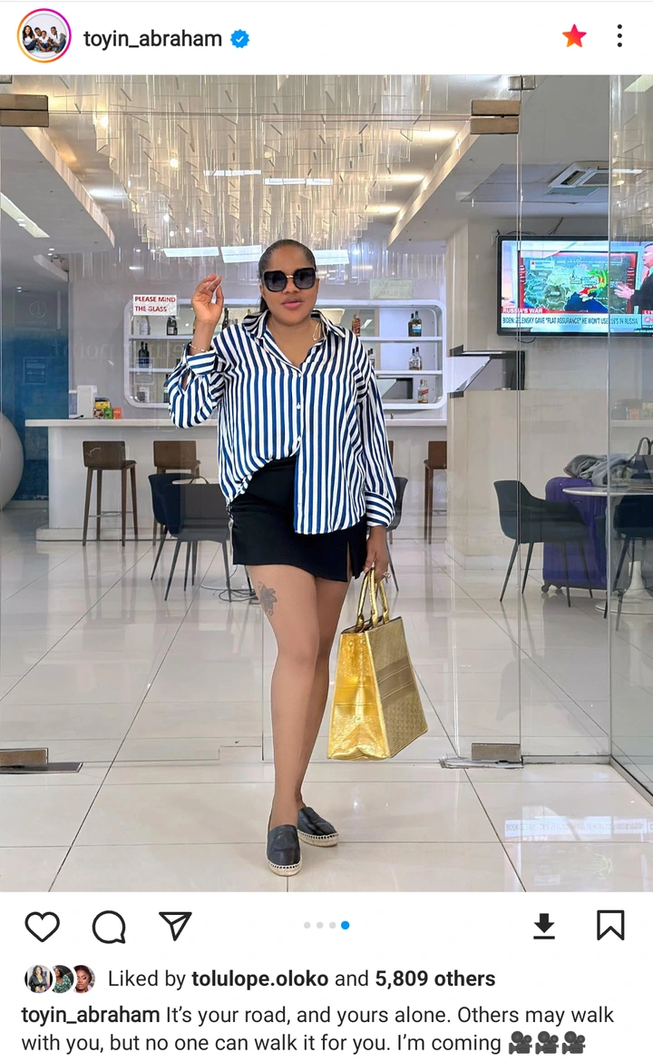 Yoruba movie actress, Toyin Abraham has used her most recent Instagram to showcase her beauty to her fans. She is someone who loves to show off her beauty in different outfits on social media, and she did it again by appearing in a gorgeous outfit. After coming across her post, her husband, Kolawole Ajeyemi, could not help but react as he expressed his opinion on her page.