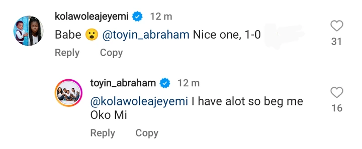 After seeing her post, her husband, Kolawole Ajeyemi, was quick to react by saying, “Babe, nice one, 1-0.” This reaction shows that her new post is well-appreciated by her colleague, as shown by his positive comment.